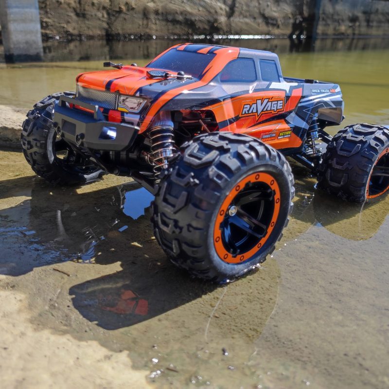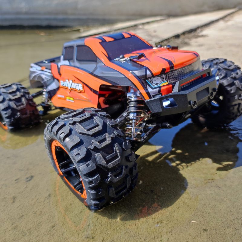 A modell szívét egy nagy teljesítményű kefe nélküli (brushless) motor adja, amely nemcsak erősebb, hanem tartósabb is a hagyományos kefés motoroknál. A teljes fém hajtáslánc biztosítja a megbízható erőátvitelt még intenzív használat során is. A szivárgásmentes differenciálművek egyenletes teljesítményt garantálnak, míg a golyós csapágyak csökkentik a súrlódást és növelik az élettartamot.